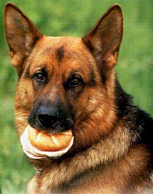 Rex´s favoritmat är kycklingbröst, anklever, korv och äpplen, men som vi vet knycker han till sig mackor av kollegorna när tillfälle ges..